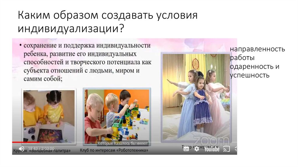 Примеры индивидуализации среды детского сада из опыта работы детских