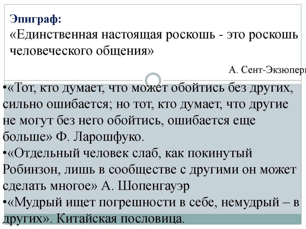больше» Ф. Ларошфуко.