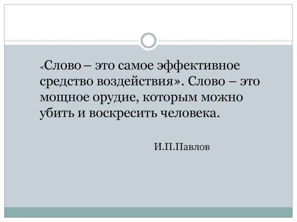 Слово – это самое эффективноесредство воздействия». Слово – это