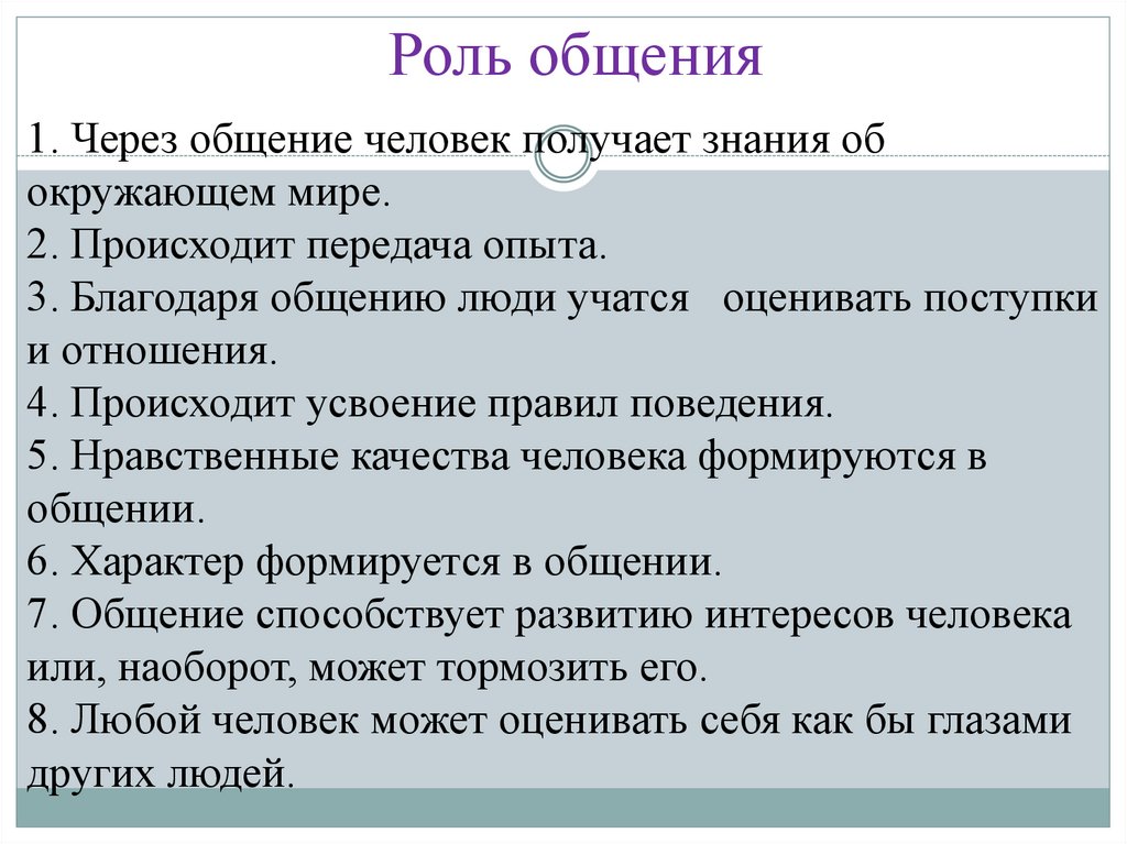 Роль общения1. Через общение человек получает знания об