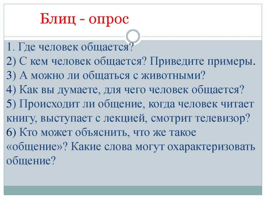 Блиц - опрос1. Где человек общается?