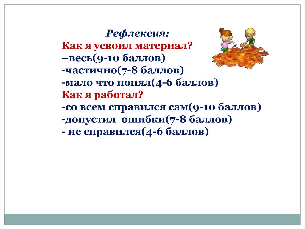 Рефлексия:Как я усвоил материал?