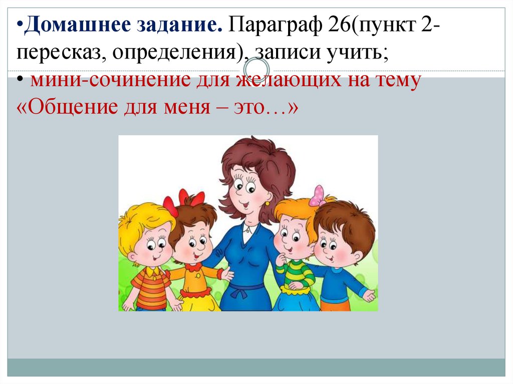 •Домашнее задание. Параграф 26(пункт 2пересказ, определения), записи учить;• мини-сочинение для желающих на тему