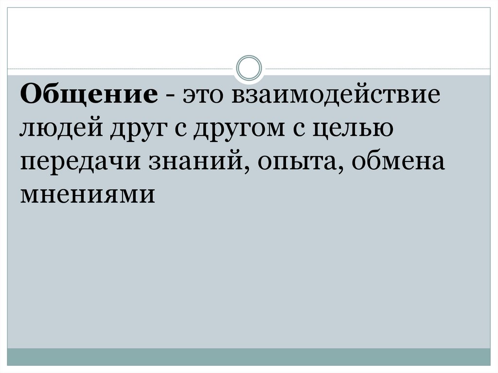 Общение - это взаимодействиелюдей друг с другом с целью