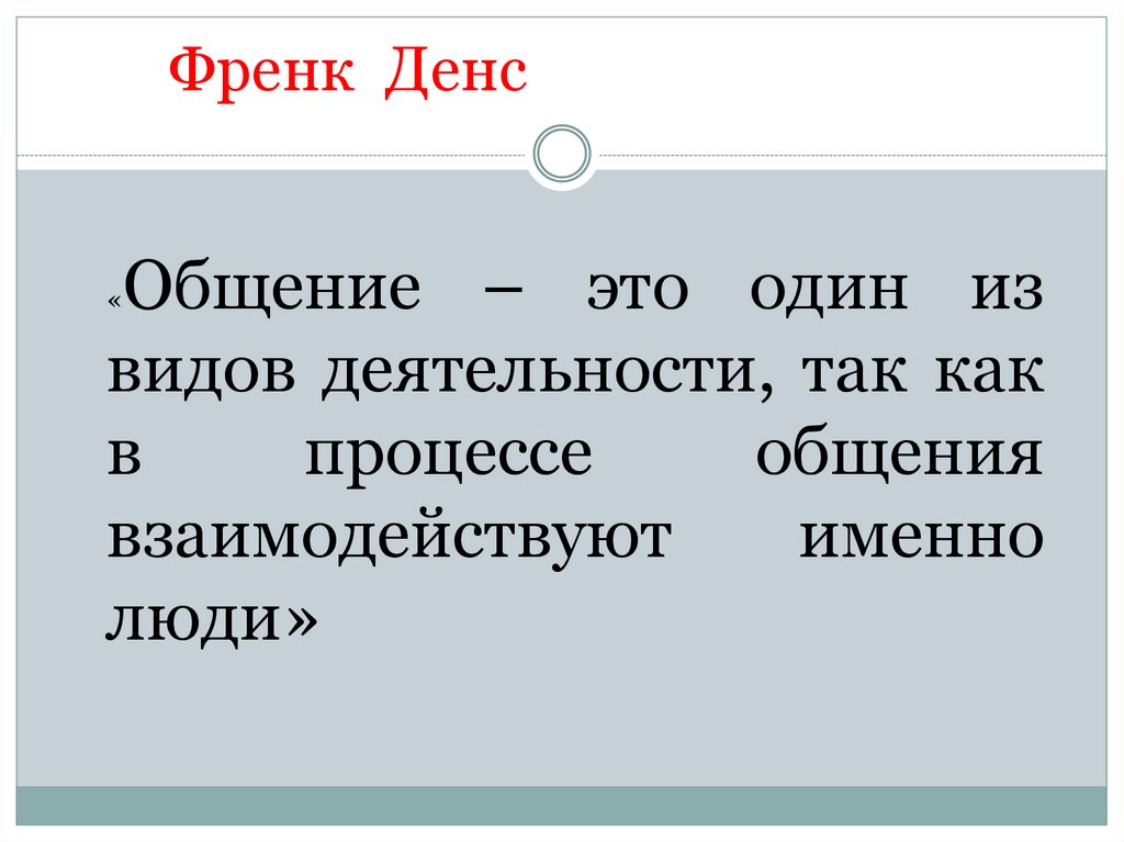 Френк ДенсОбщение – это один из
