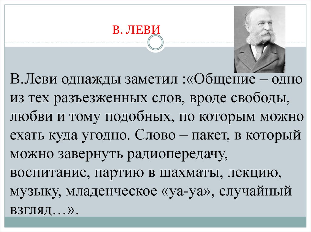 В. ЛЕВИВ.Леви однажды заметил :«Общение – одно