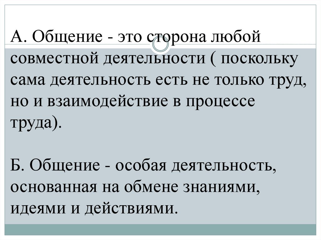 А. Общение - это сторона любойсовместной деятельности ( поскольку