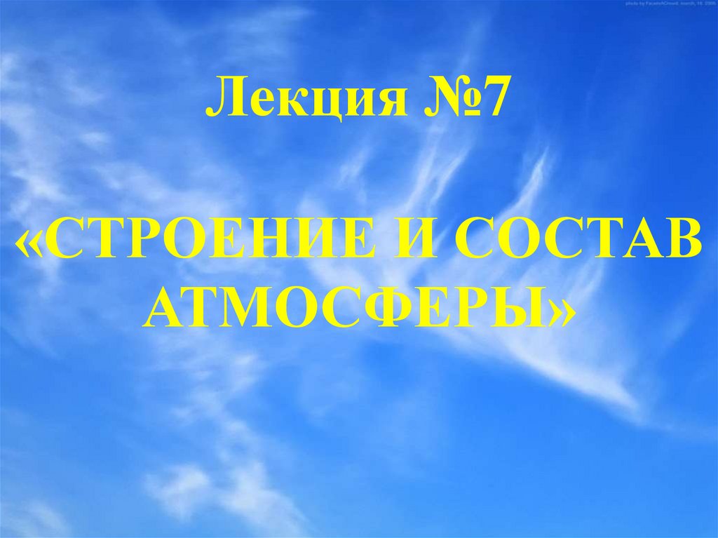 1. Лекция №7 «СТРОЕНИЕ И СОСТАВ АТМОСФЕРЫ»