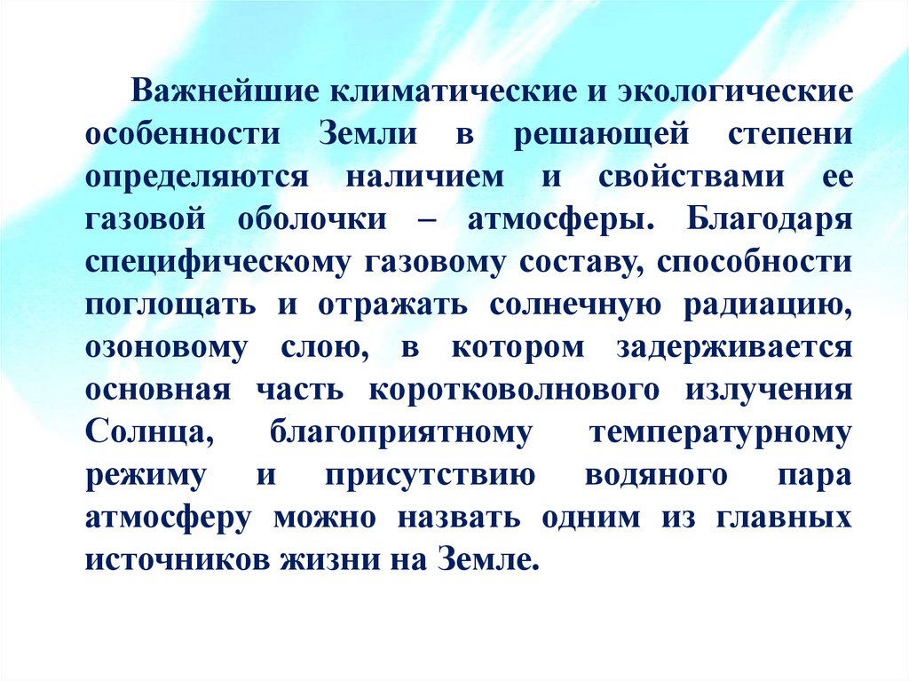 Важнейшие климатические и экологическиеособенности Земли в решающей степени