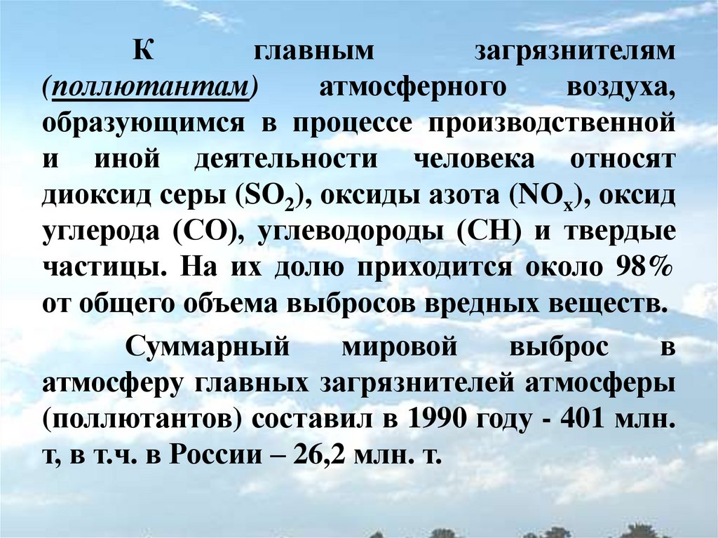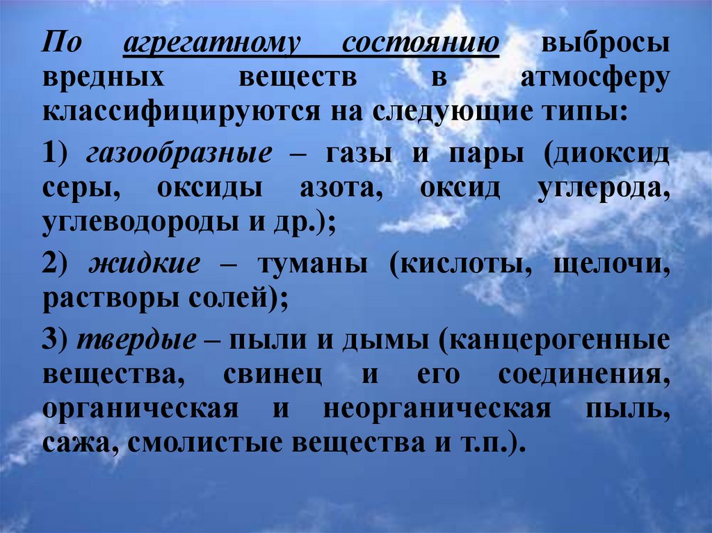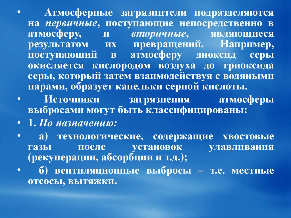 Атмосферные загрязнители подразделяются