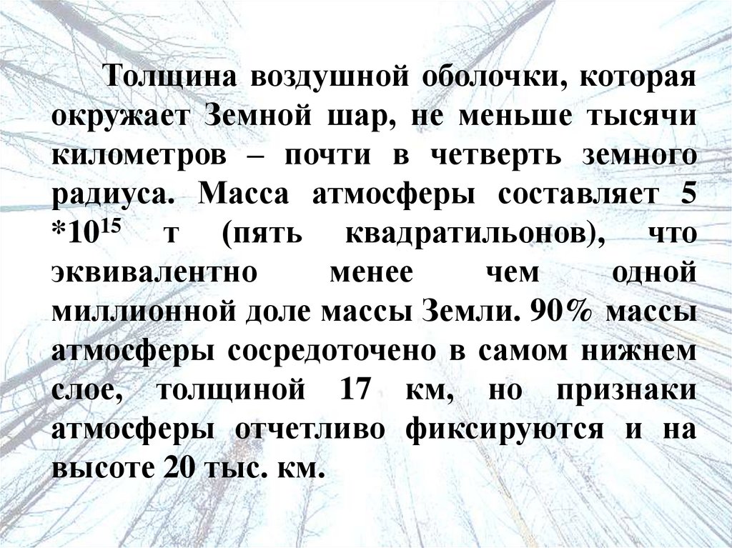 радиуса. Масса атмосферы составляет 5