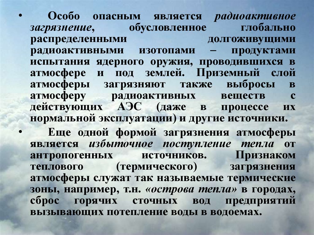 Еще одной формой загрязнения атмосферы