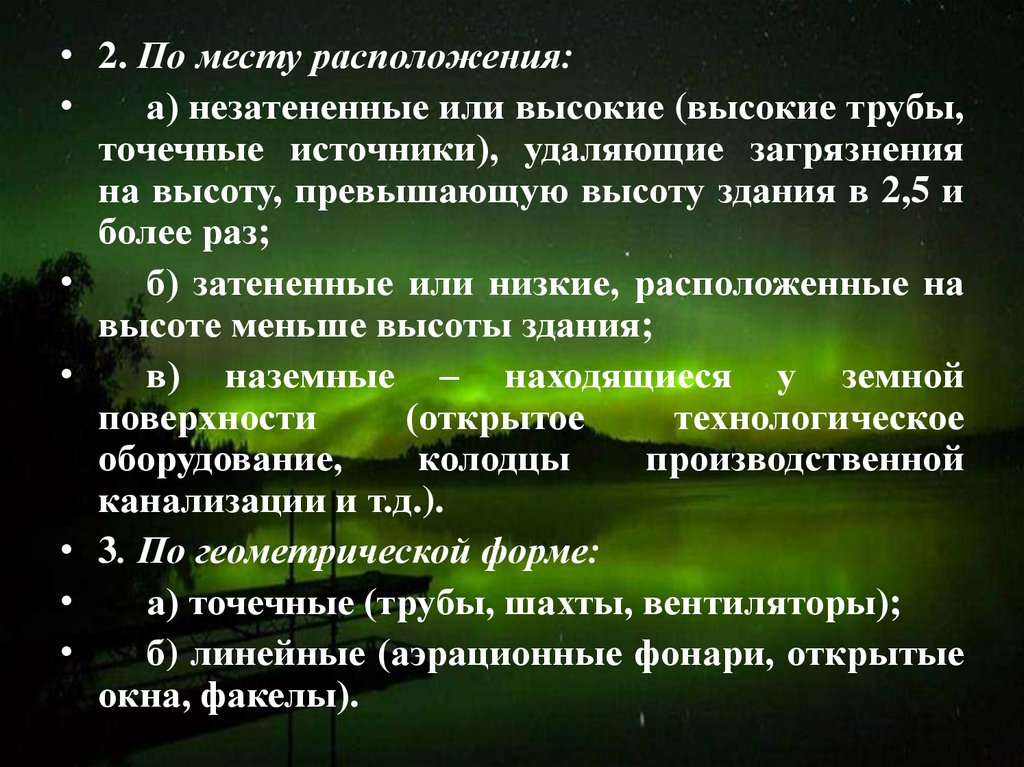 а) точечные (трубы, шахты, вентиляторы);