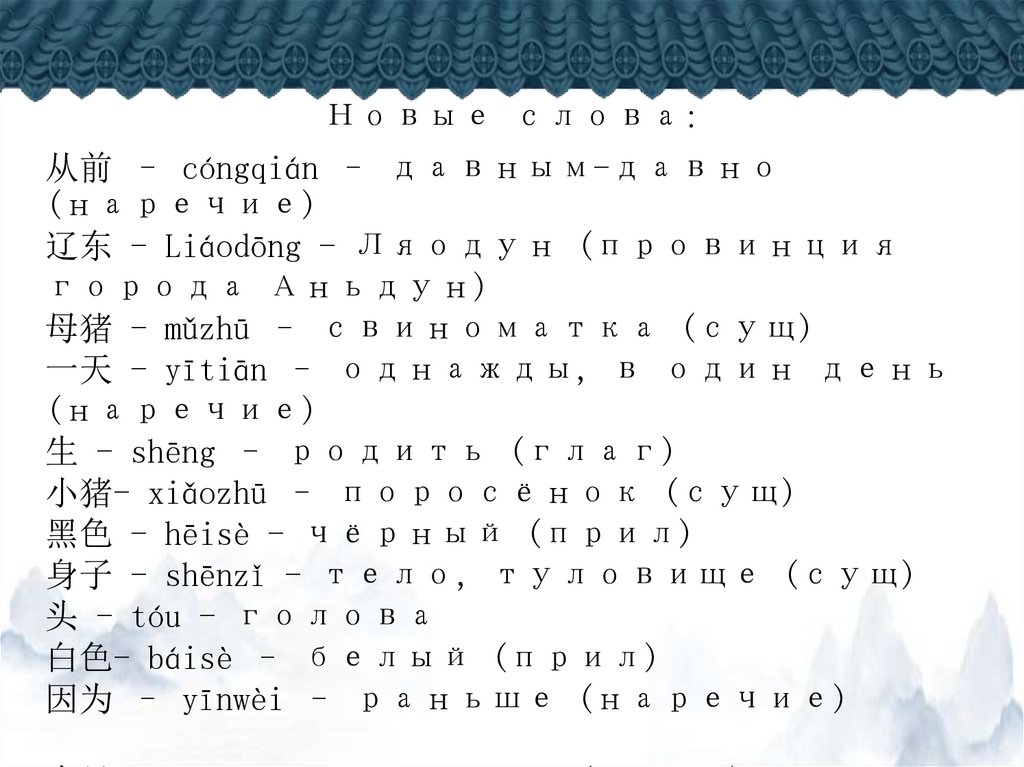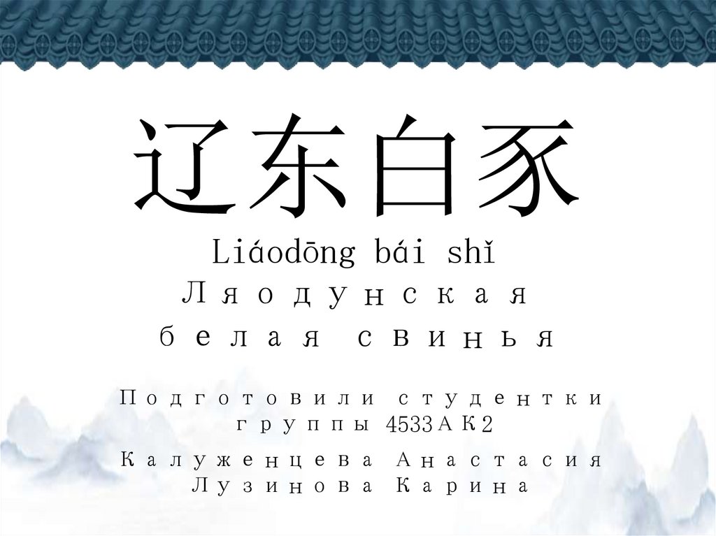 1. 辽东白豕 Liáodōng bái shǐ Ляодунская белая свинья