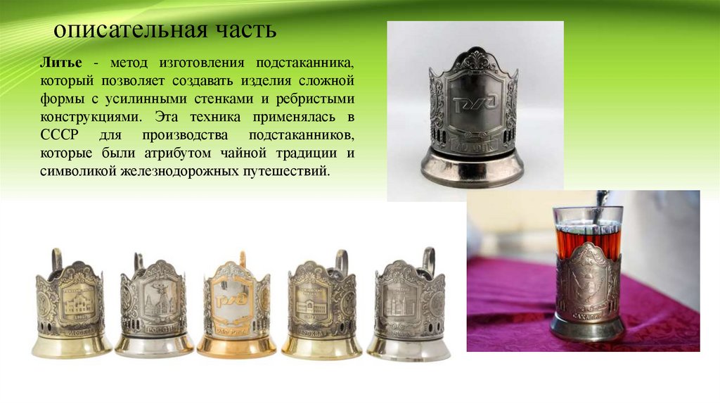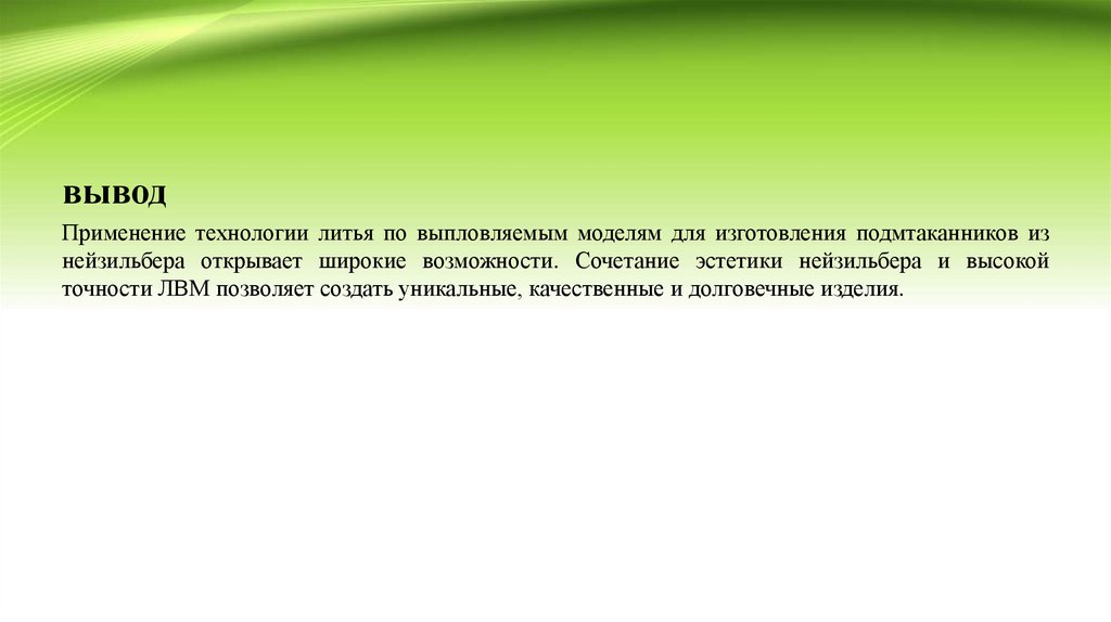 выводПрименение технологии литья по выпловляемым моделям для изготовления подмтаканников из