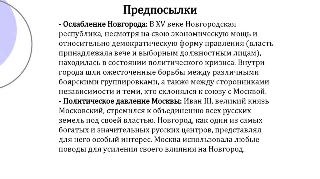 Предпосылки- Ослабление Новгорода: В XV веке Новгородская
