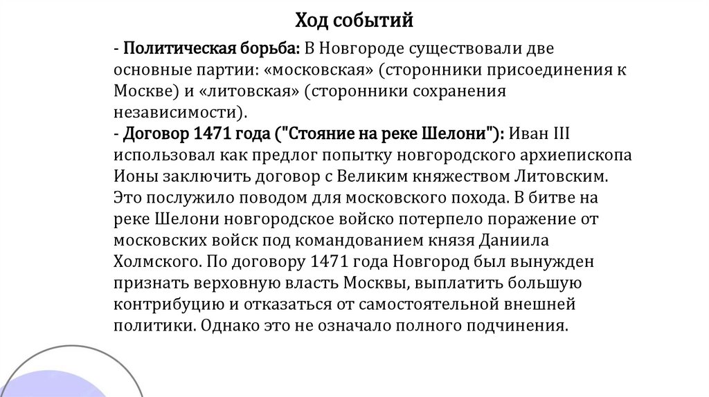 - Договор 1471 года ("Стояние на реке Шелони"): Иван III