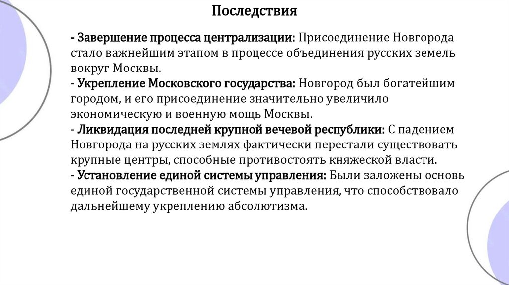 Последствия- Завершение процесса централизации: Присоединение Новгорода