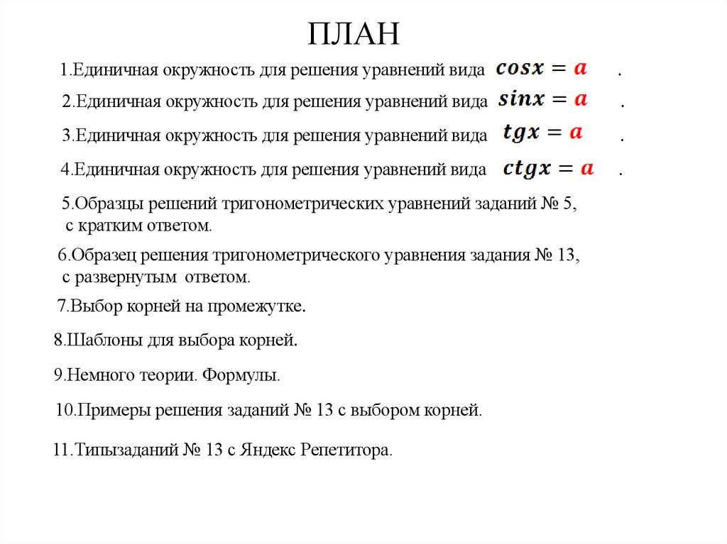 ПЛАН1.Единичная окружность для решения уравнений вида