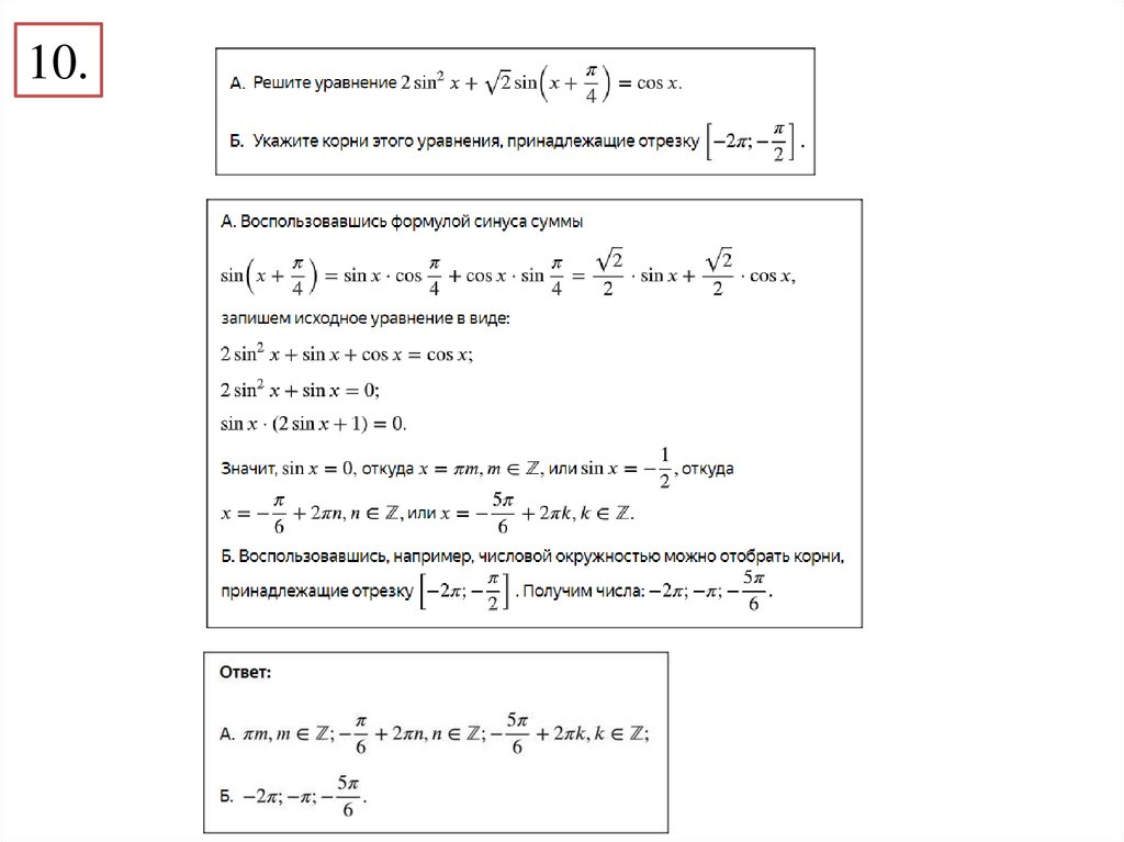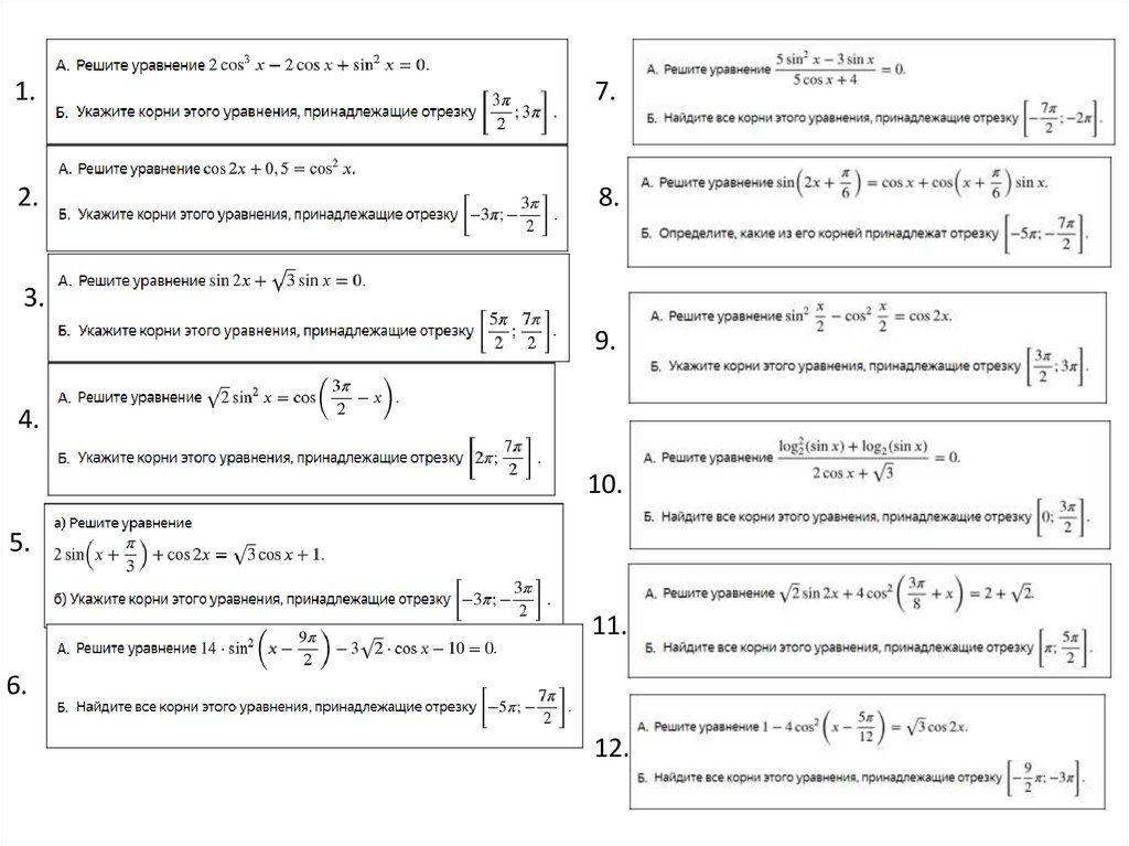 1. «Тригонометрические уравнения. Отбор корней» на углубленном уровне