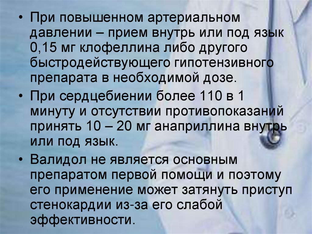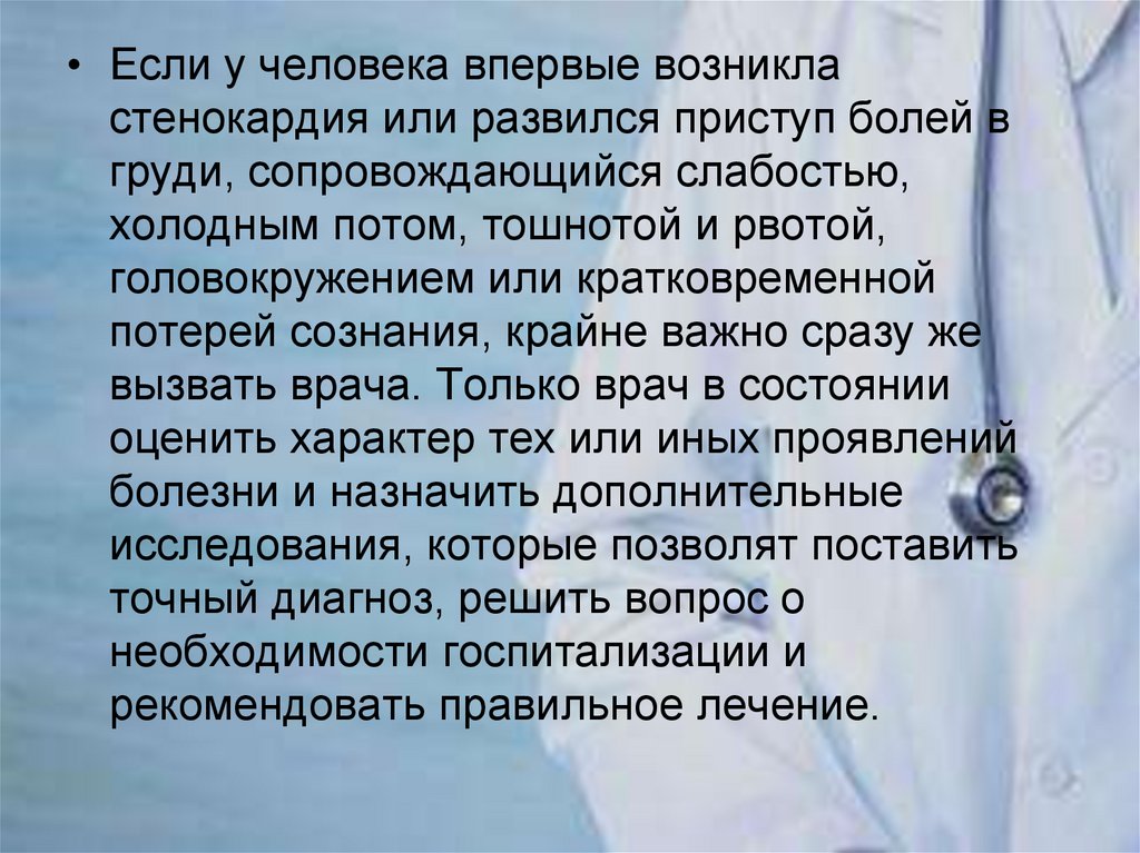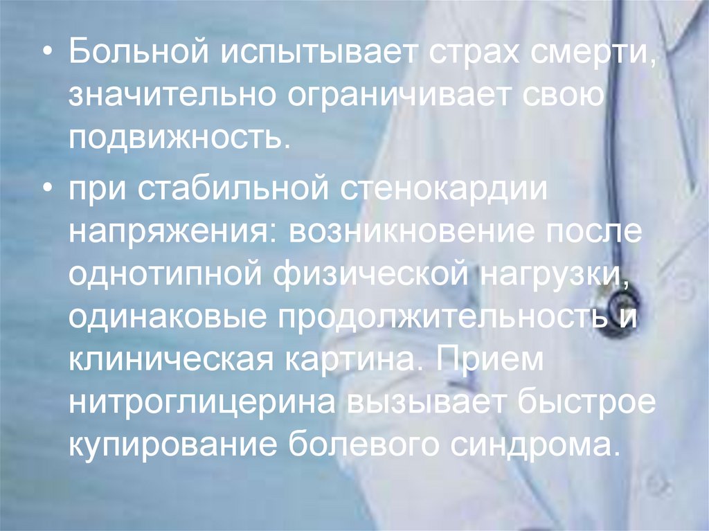 • Общие принципы поведения пациентастрадающего приступами стенокардии