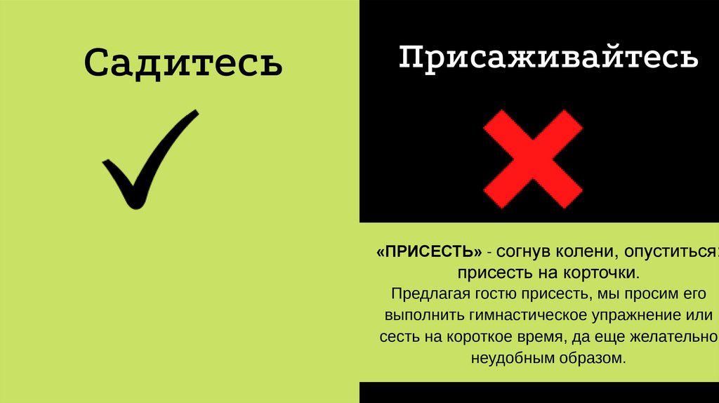 «ПРИСЕСТЬ» - согнув колени, опуститься: