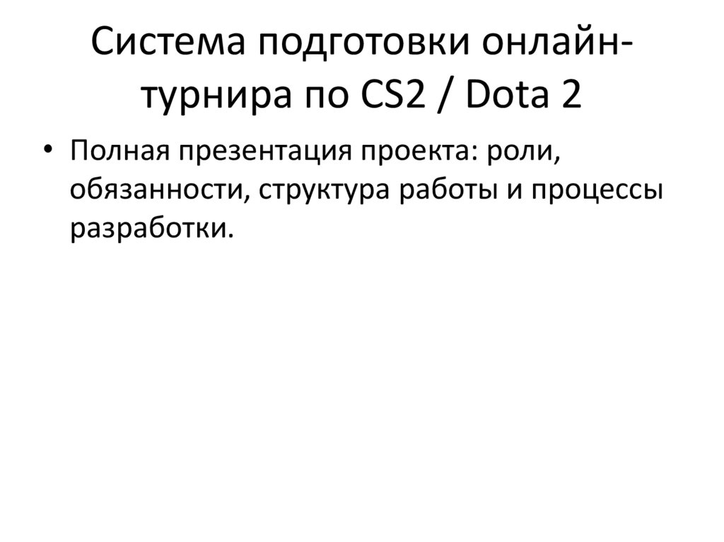 Система подготовки онлайнтурнира по CS2 / Dota 2• Полная презентация проекта: роли,