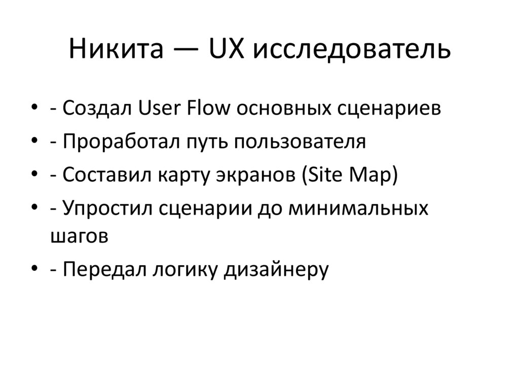 Никита — UX исследователь• - Создал User Flow основных сценариев
