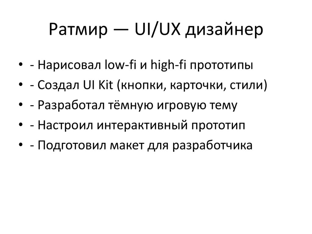 Ратмир — UI/UX дизайнер• - Нарисовал low-fi и high-fi прототипы