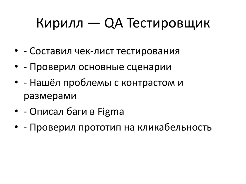 Кирилл — QA Тестировщик• - Составил чек-лист тестирования