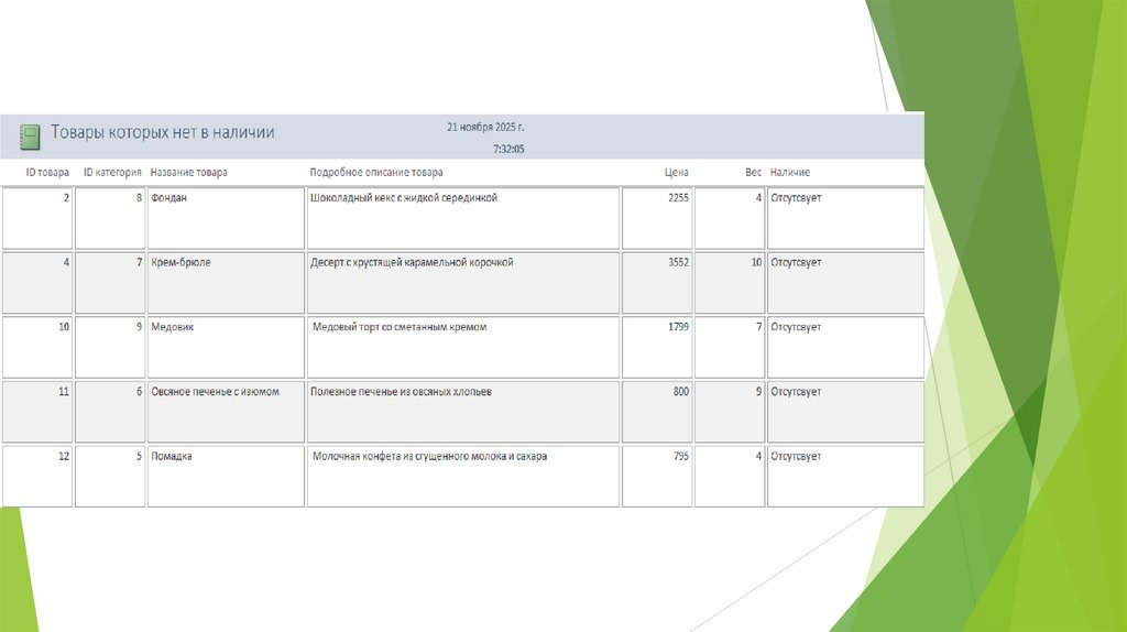 запросов, форм и отчетов. Разработанная база данных готова к внедрению