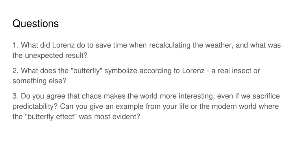 2. What does the "butterfly" symbolize according to Lorenz - a real insect or