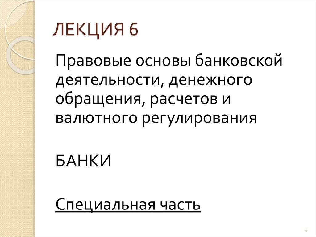 Правовые основы банковскойдеятельности, денежного