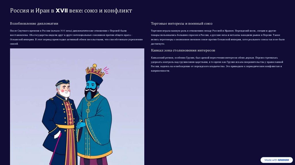 Торговля играла важную роль в отношениях между Россией и Ираном. Персидский шелк, специи и другие