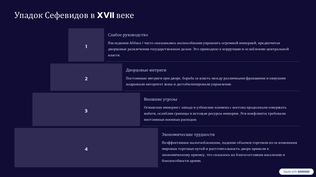 дворцовые развлечения государственным делам. Это приводило к коррупции и ослаблению центральной