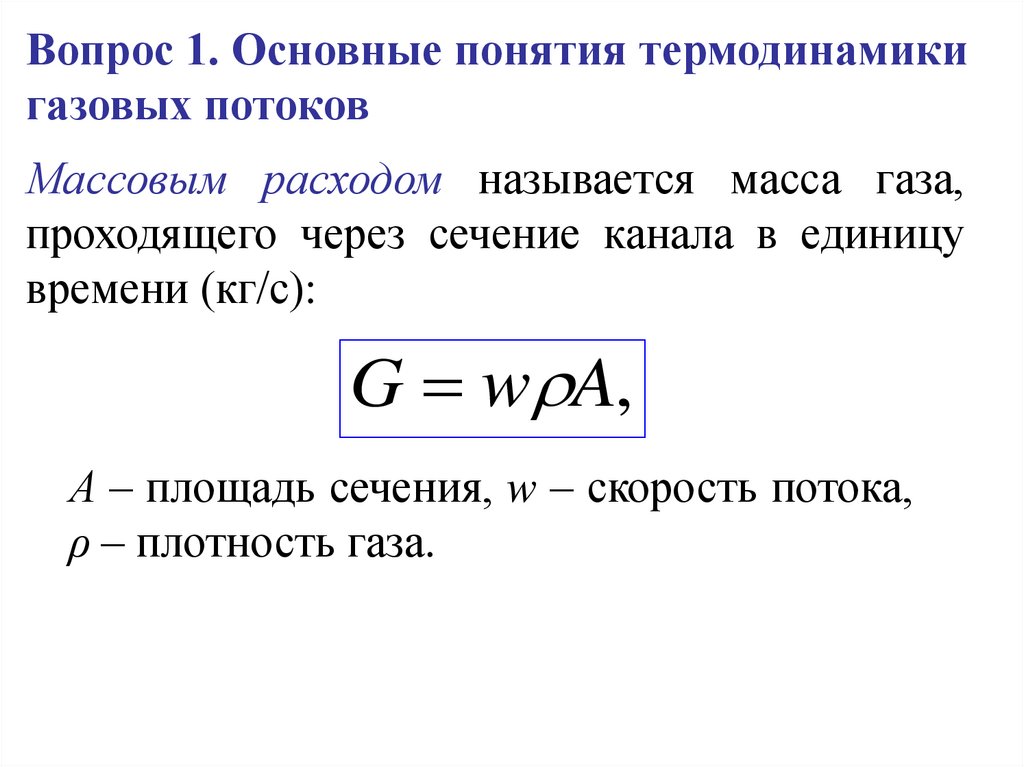 Вопрос 1. Основные понятия термодинамикигазовых потоков