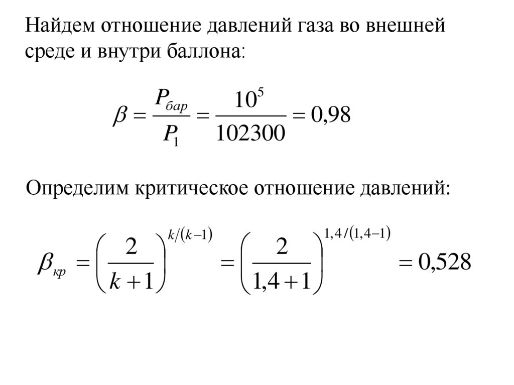 Найдем отношение давлений газа во внешнейсреде и внутри баллона: