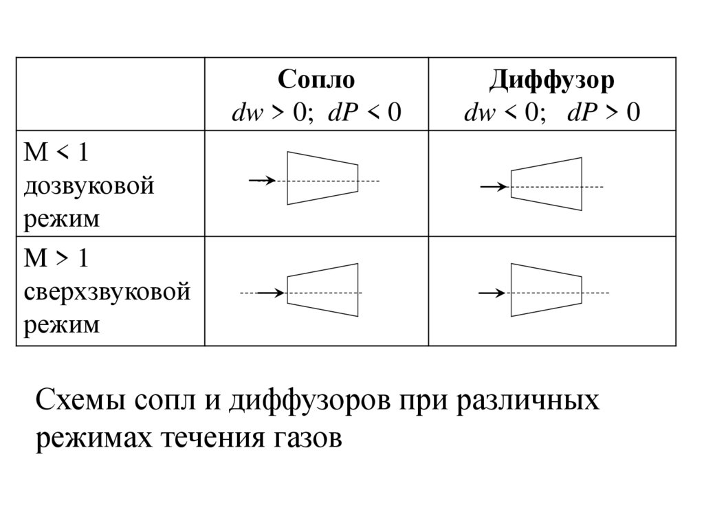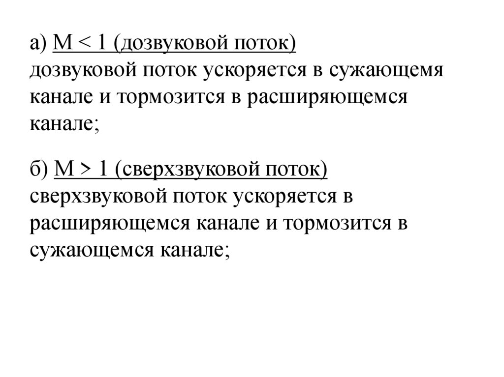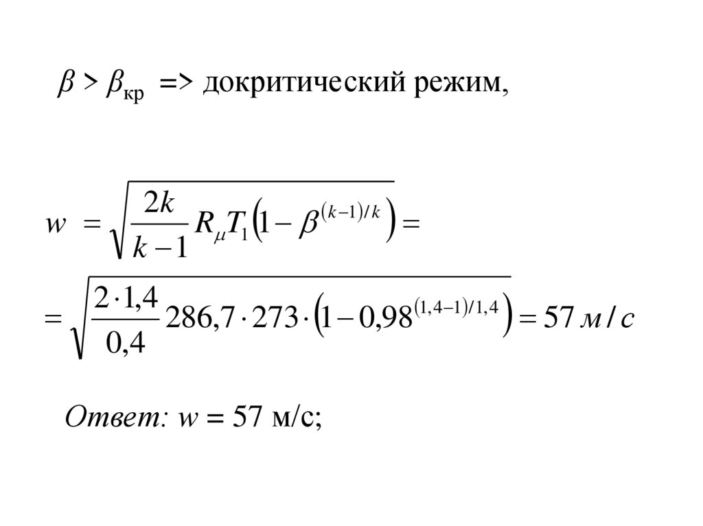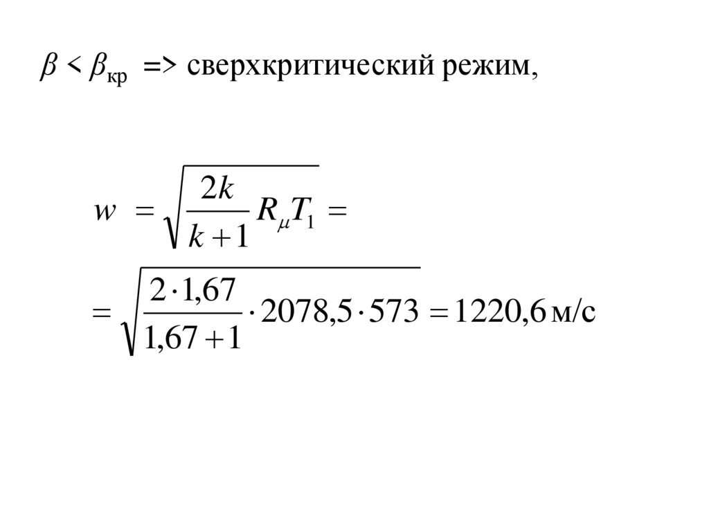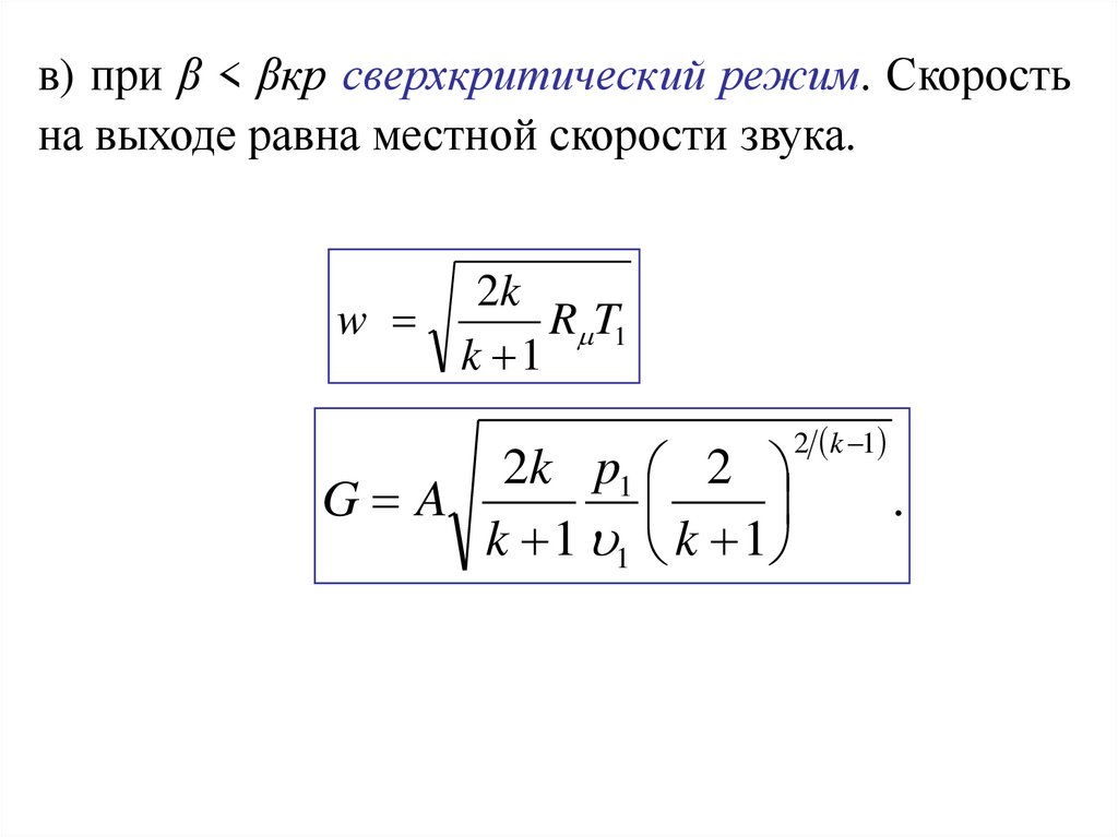 в) при β < βкр сверхкритический режим. Скоростьна выходе равна местной скорости звука.