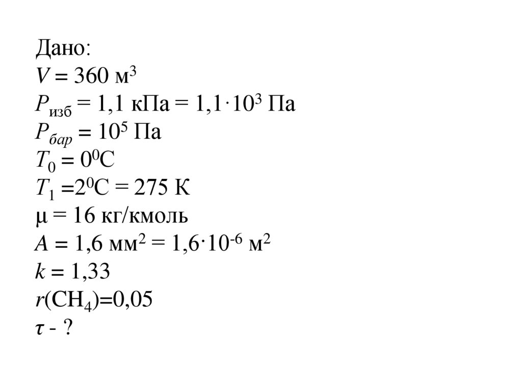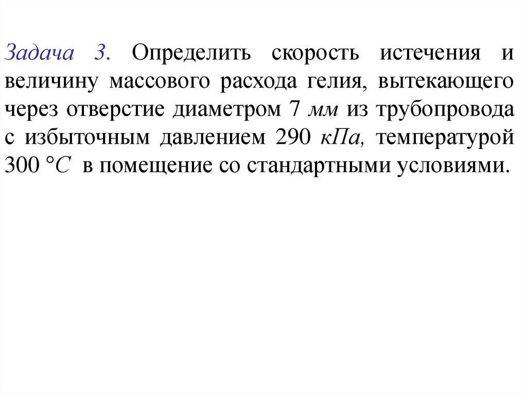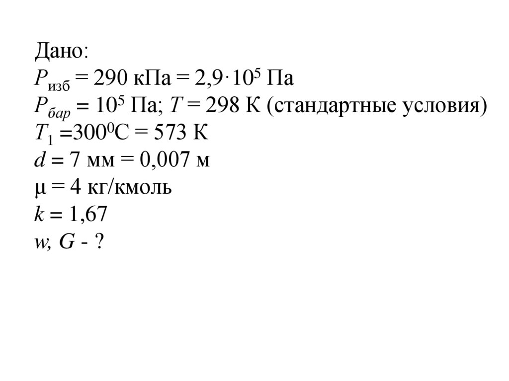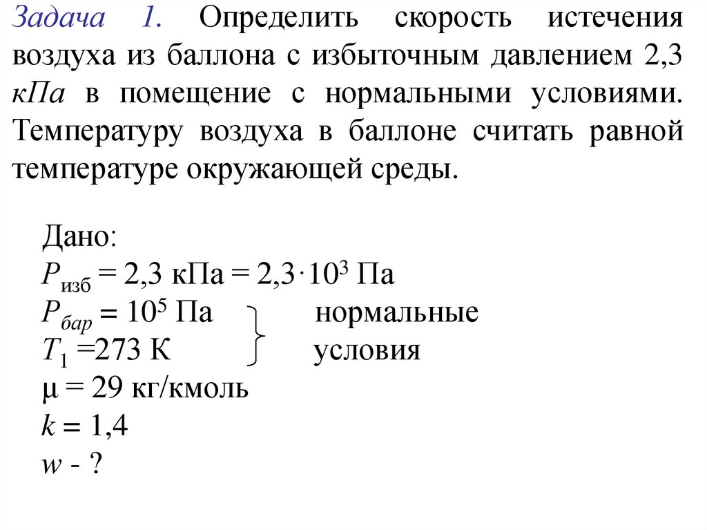 Задача 1. Определить скорость истечениявоздуха из баллона с избыточным давлением 2,3