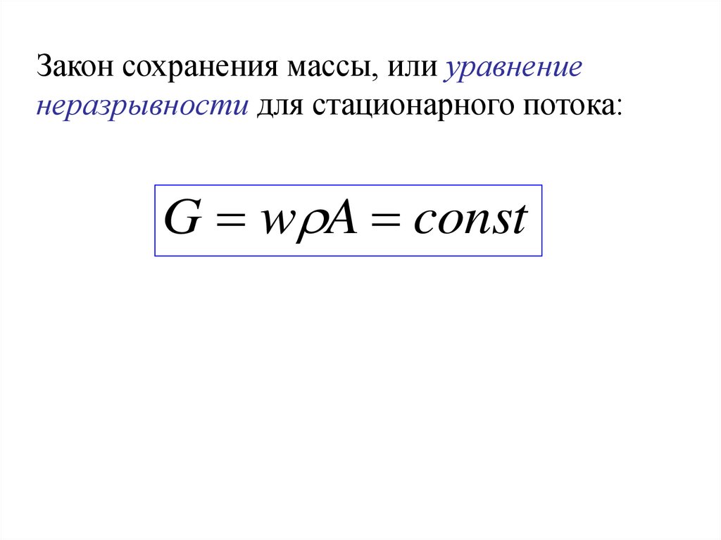 Закон сохранения массы, или уравнениенеразрывности для стационарного потока: