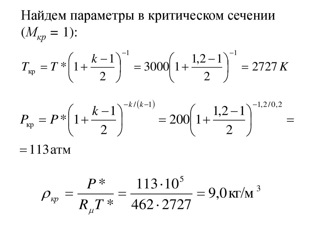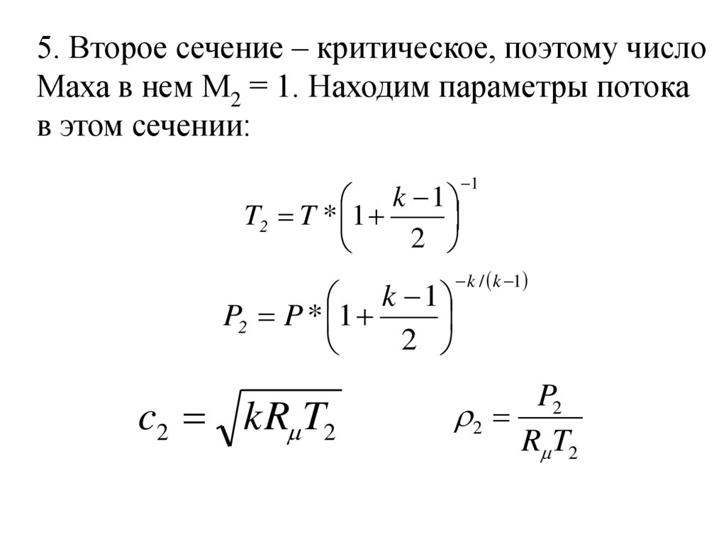 5. Второе сечение – критическое, поэтому числоМаха в нем М2 = 1. Находим параметры потока
