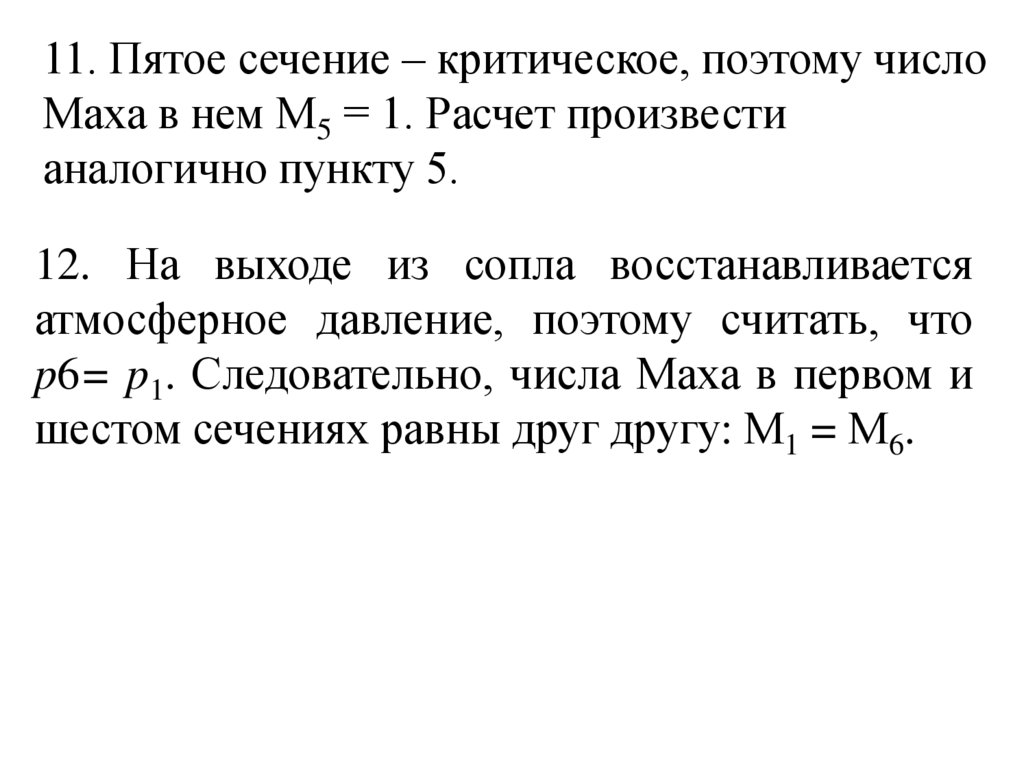 11. Пятое сечение – критическое, поэтому числоМаха в нем М5 = 1. Расчет произвести