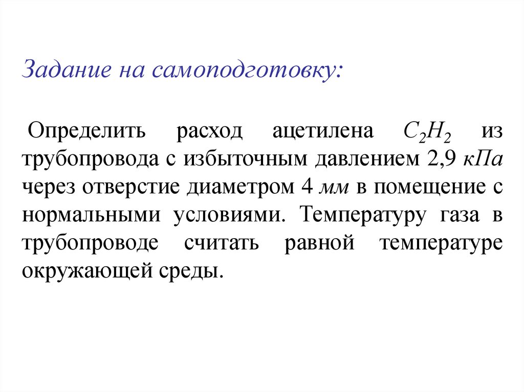 Задание на самоподготовку:Определить расход ацетилена С2Н2 из
