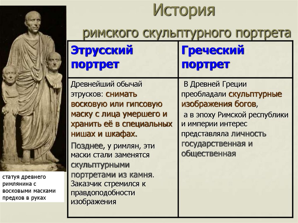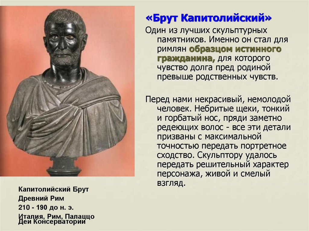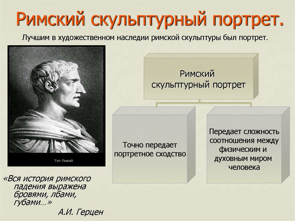 Римский скульптурный портрет.Лучшим в художественном наследии римской скульптуры был портрет.