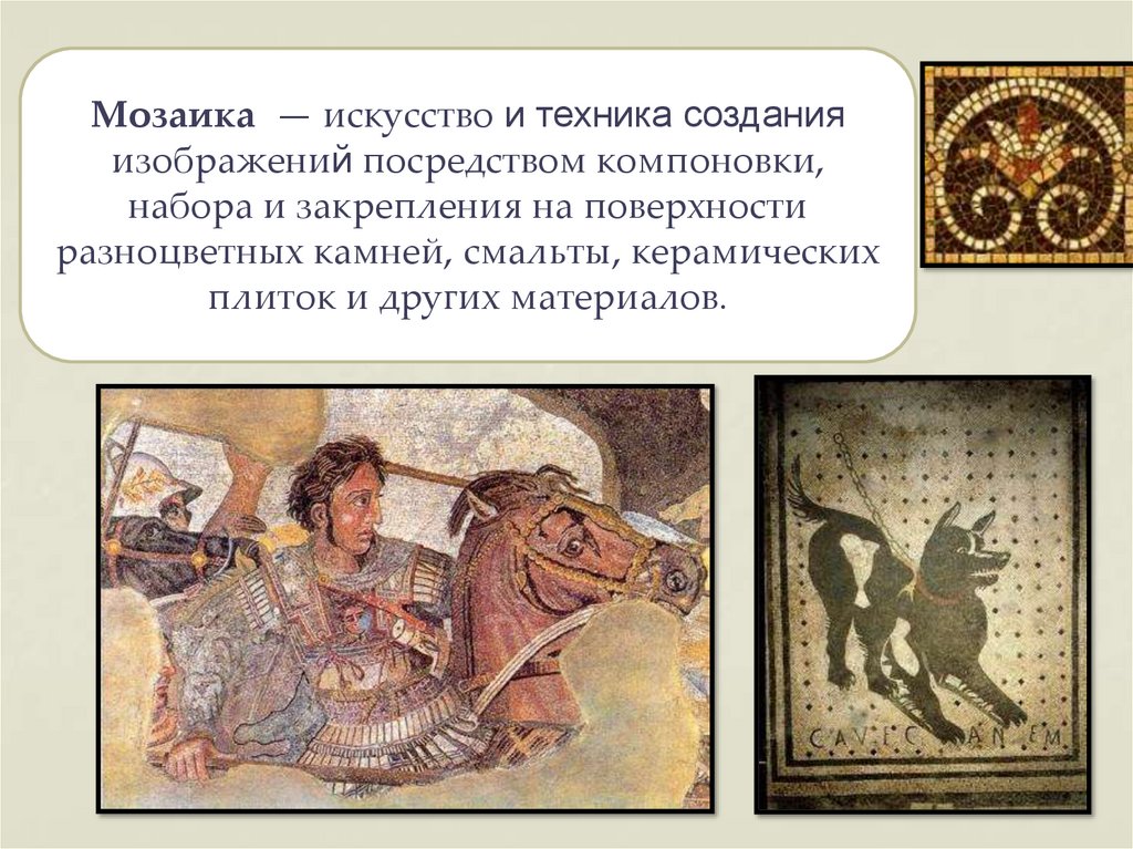 Мозаика — искусство и техника созданияизображений посредством компоновки,