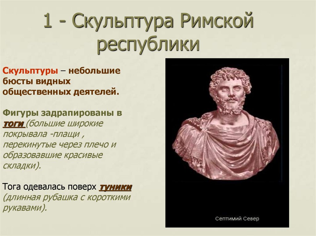 изобразительное искусство Римской республики впитало всебя достижения всех завоеванных земель и народов.