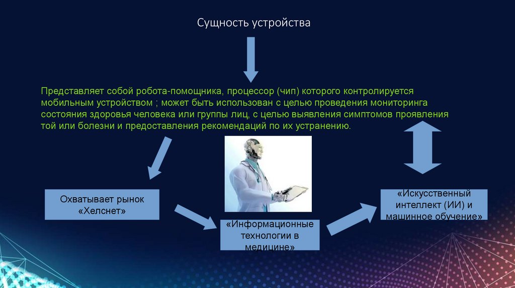 Сущность устройстваПредставляет собой робота-помощника, процессор (чип) которого контролируется