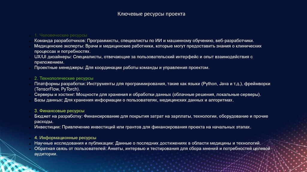 Команда разработчиков: Программисты, специалисты по ИИ и машинному обучению, веб-разработчики.