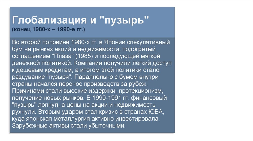 Глобализация и "пузырь"(конец 1980-х – 1990-е гг.)