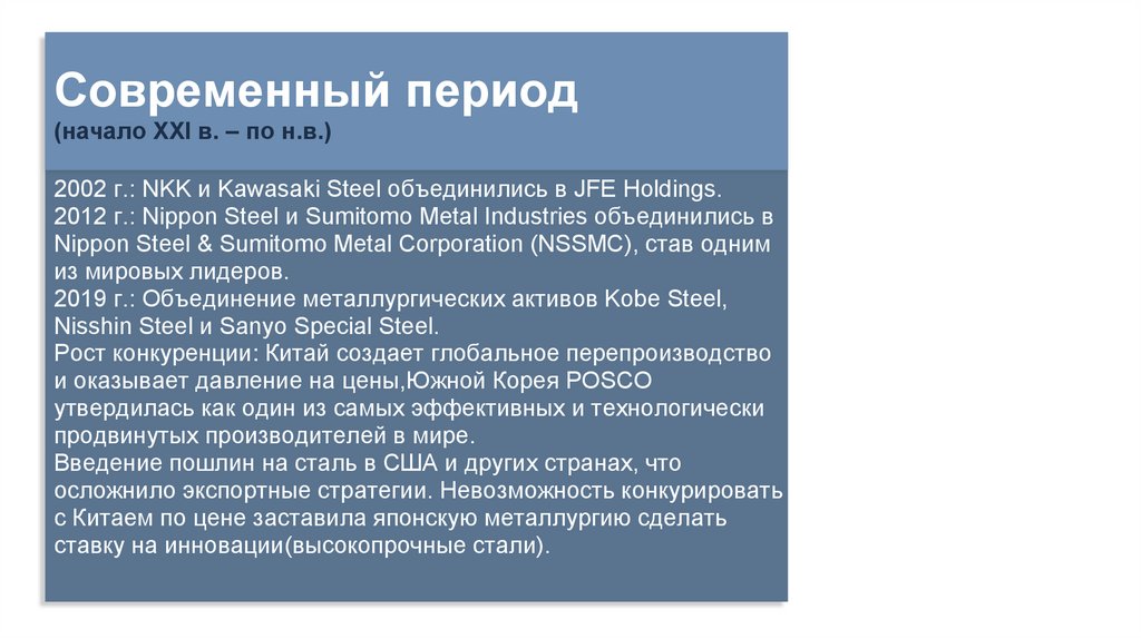 2012 г.: Nippon Steel и Sumitomo Metal Industries объединились в
